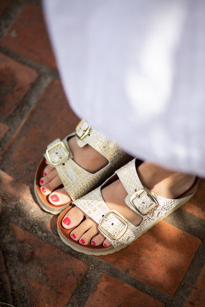 Sandalia Clover dos hebillas Croco Oro Kiko´s Shoes