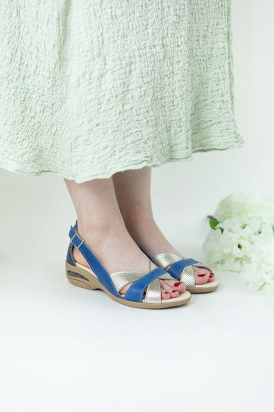 Sandalia Zoé azul y plata